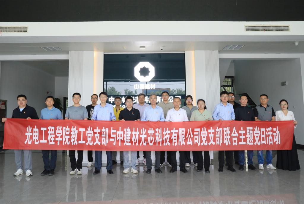 为深入推进基层党组织建设,探索校企党建融合新模式,5月19日,光电工程学院与中建材光芯科技有限公司开展党建共建活动。学校党委委员、组织部部长袁俊现,光电工程学院党委书记李伟,中建材光芯科技有限公司党支部书记、董事、总经理张兵强,党支部副书记、副总经理王三昭以及双方党员代表共20余人参加活动。