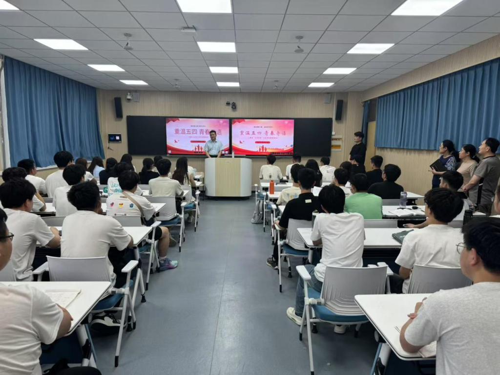 班会上,闫昕以“重温五四,青春寄语”为主题,深刻解读了“爱国、进步、民主、科学”的核心内涵,引导全体同学传承和弘扬五四精神,厚植爱国主义情怀,坚定不移听党话、跟党走,并对青年学子提出三点期望:一要坚定理想信念,牢记习近平总书记的殷切嘱托,在强国建设、民族复兴的历史潮流中实现自己的人生价值;二要做志存高远、脚踏实地的青年,以动态规划锚定职业方向,在知行合一中练就过硬本领;三要做学校建设发展的“参与者”,充分发挥主人翁精神,主动为校园建设、管理服务等工作建言献策,将个人成长与学校发展紧密结合。