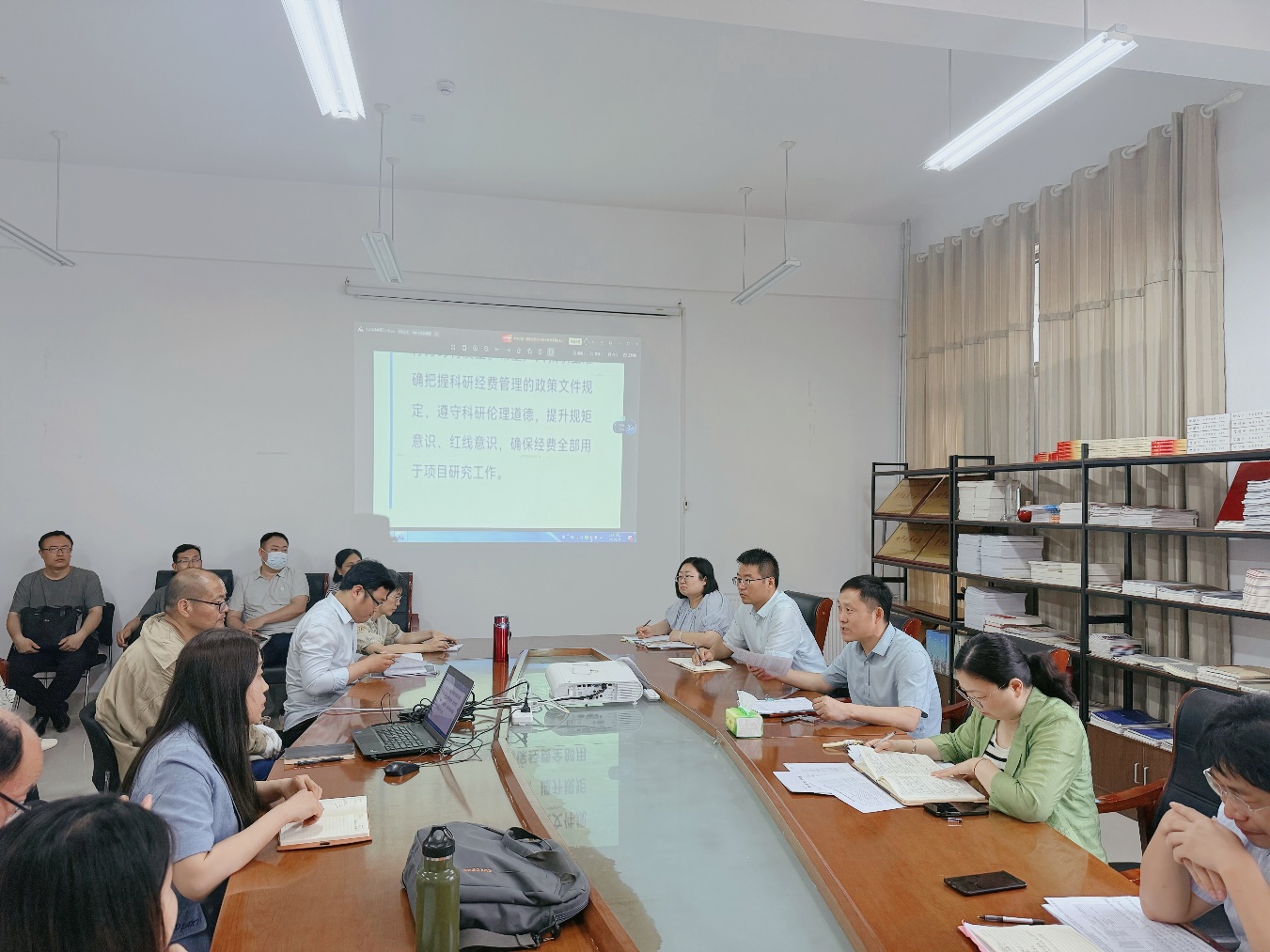 会议学习了《习近平关于加强党的作风建设论述摘编》《中国共产党章程》的部分章节及理论文章《八项规定改变中国》,选取了部分反面典型案例进行了传达,重点剖析了套取科研经费和违规使用科研经费典型案例,与会人员结合案例进行了深刻的反思交流研讨。