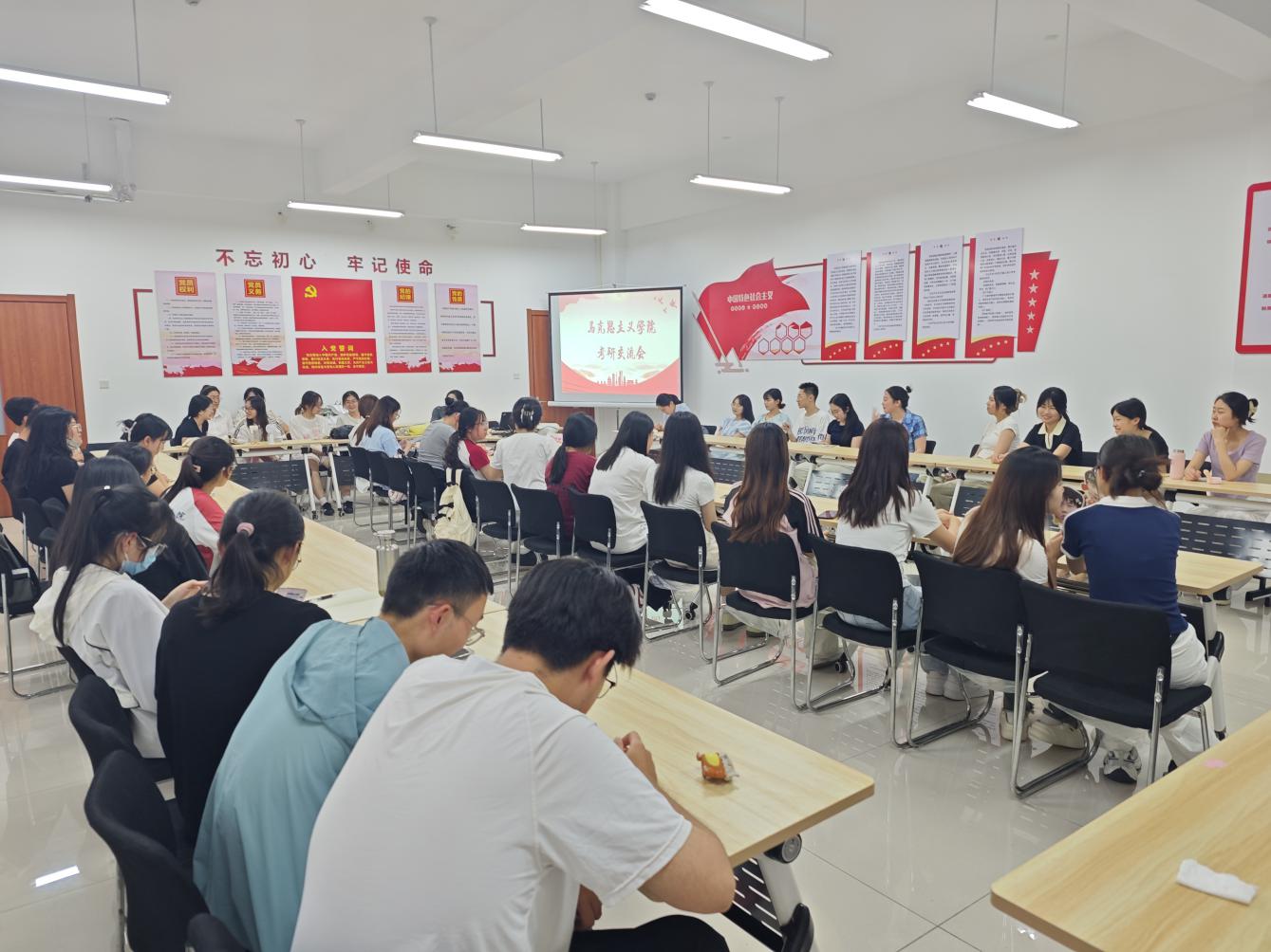 为助力学生们明确考研方向、科学制定学习计划、提高备考效率,5月20日,马克思主义学院在薛城校区豁然楼B317会议室举办考研经验分享交流会,本次交流会特邀2025届11位优秀毕业生代表分享考研上岸经验。