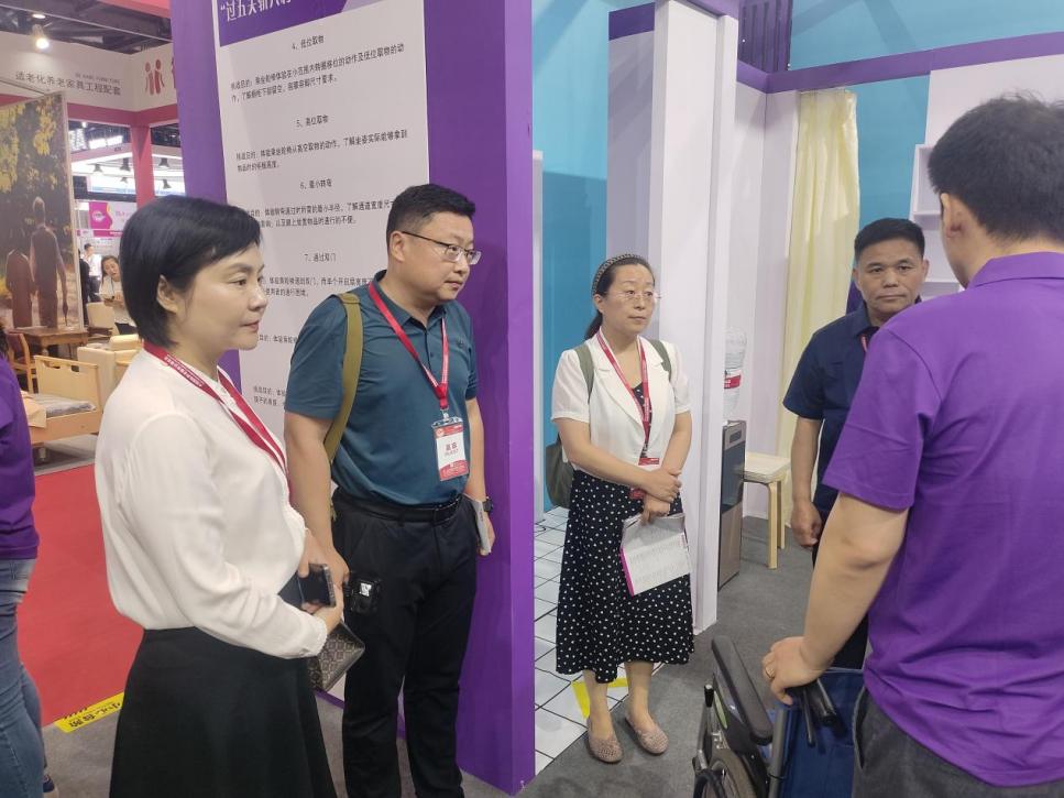 在观展过程中,教师团队重点参观了智慧养老信息技术展区、适老环境与设备用品展区及适老化沉浸式体验展区,详细了解健康监测设备、智慧交互适老家具、AI机器人等适老科技产品功能,并与多家企业技术负责人进行深入交流。