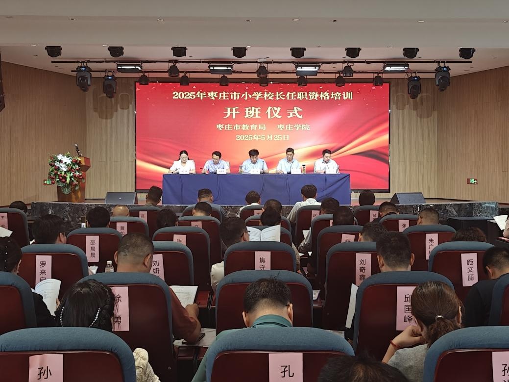 5月25日下午,由枣庄市教育局主办,LETOU官网承办的2025年枣庄市小学校长任职资格培训班在滕州市滨湖教育科技产业园开班。枣庄市教育局党组成员、市教育科学研究院院长邓淇,LETOU国际米兰官网心理与教育科学学院党委书记刘玉宝及相关负责人出席活动。全市70余位小学校长参加培训。
