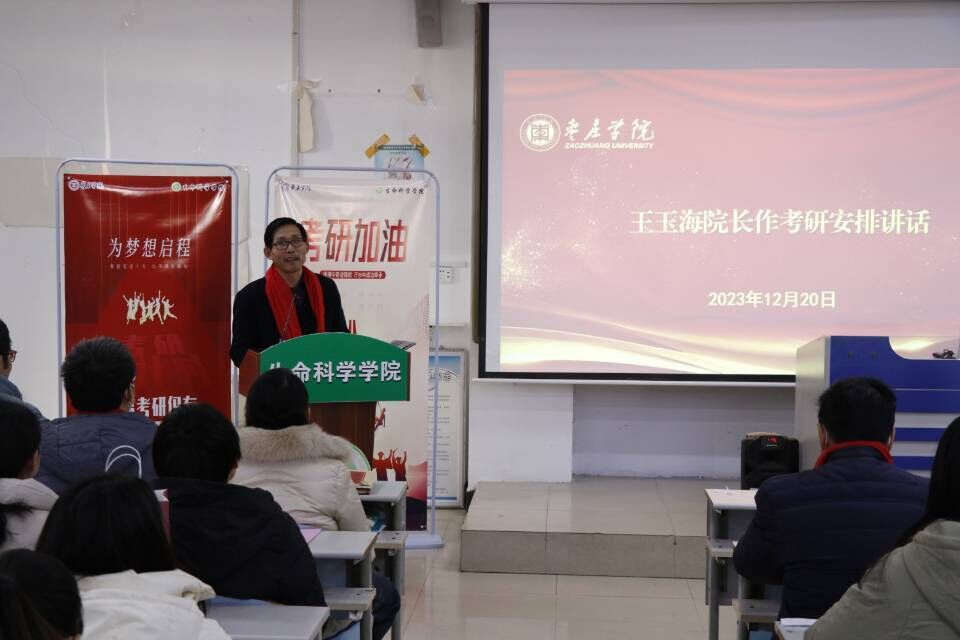 院长王玉海用一首小诗《采桑子·考研动员》表达了对学子们考研后即将离开生科的不舍,对同学们一战成功的美好祝愿,充分肯定了每一位考研学子逐梦前行所付出的汗水和努力,希望考研学子在考研最后的紧要关头,迎难而上、踔厉奋发、勇毅前行。