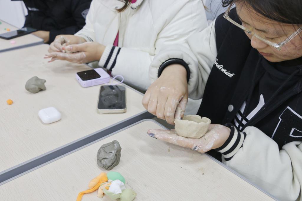 本次活动分为非遗知识小课堂、篆刻文化之旅、手工制作三部分。非遗知识小课堂带来了非遗文化传承及当下枣庄地区非遗文化的介绍和展示。篆刻文化之旅环节中,美术与艺术设计学院书法专业教师董汉泽老师为同学们作篆刻文化的宣讲,并进行了现场篆刻DIY体验。在手工制作部分,开展了剪纸、缠花、篆刻、陶艺制作等活动,现场气氛热烈,大家都表现出极大的兴趣和热情。