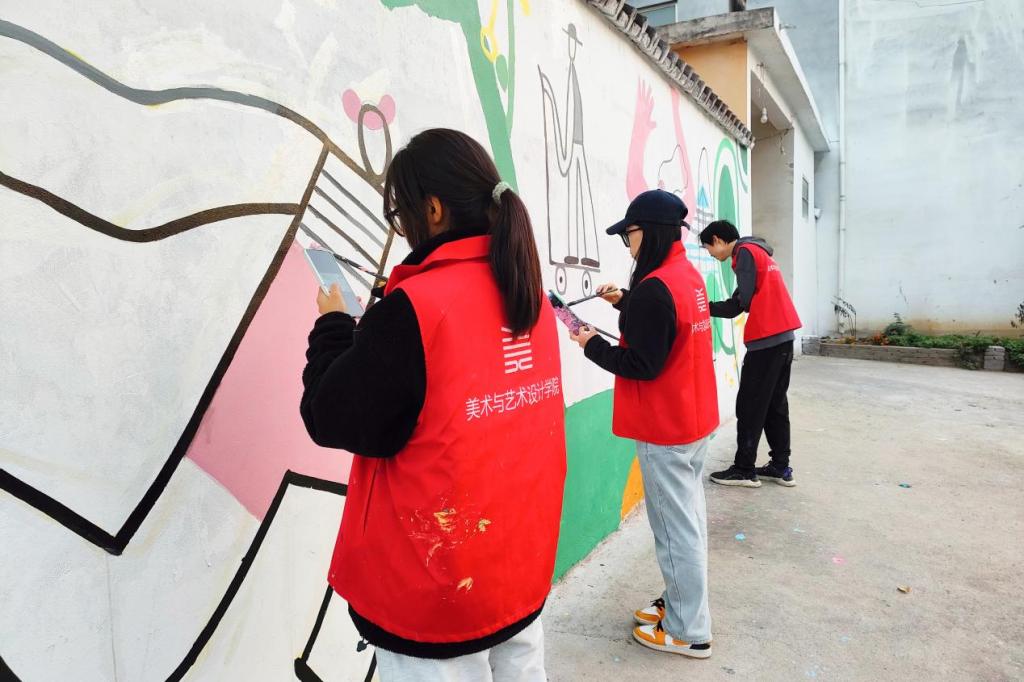 为深入学习贯彻习近平新时代中国特色社会主义思想,引导广大青年积极响应党和国家的号召,助力乡村振兴,近日,美术与艺术设计学院“青绘·艺行”志愿者服务队深入薛城区沙沟镇岩湖村开展“百万大学生进社区”社会实践活动。