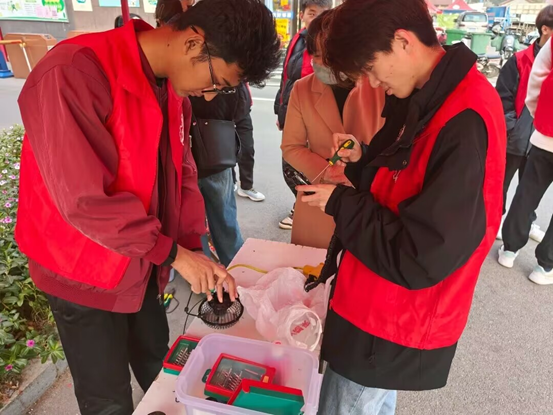 活动伊始,志愿者们分工明确,迅速拉好横幅、摆好服务台,做好了准备工作。在社区的宣传下,居民群众带着需要维修的电风扇、电水壶、剃须刀等电器赶来,随后志愿者仔细检查并耐心询问家电损坏的情况,认真地修理每个小家电,通过拆卸、更换配件、调试,一件件损坏的电器重新运转,发现棘手问题后,他们积极讨论,共同商议解决方案,竭尽所能为居民解决问题,并在维修的过程中向居民介绍日常家电的使用方法及保养知识,避免因使用不当而导致电器损坏。在志愿者的努力下,多数电器被修好,对于无法修缮的电器,志愿者们也为居民群众们提供解决的措施。志愿者们热情的态度和扎实的技术获得了社区居民的交口称赞。