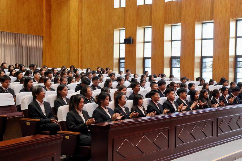 会议在庄严的国歌中拉开了序幕。校团委书记丁聪对学生会下一步工作提出了明确要求,一是要坚定理想信念,守牢对党忠诚的“生命线”,在学思践悟中坚定对马克思主义的信仰、对中国特色社会主义的信念、对实现中华民族伟大复兴中国梦的信心;二是要勇担时代责任,激发干事创业的精气神,勤学笃行,接续奋斗,挺膺担当;三是要聚焦主责主业,发扬求真务实、真抓实干的工作作风,以“抓铁有痕、踏石留印”的劲头干好工作;四是要提升精神境界,加强道德修养和品格养成,自觉强化自我修炼,充分发挥模范带头作用。