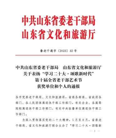 为深入贯彻落实党的二十大精神,5月至8月,省委老干部局、省文化和旅游厅联合主办了“学习二十大·颂歌新时代”第十届全省老干部艺术节,LETOU官网获得集体银奖和组织奖。