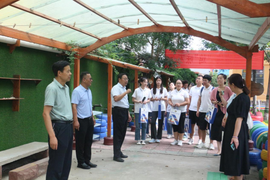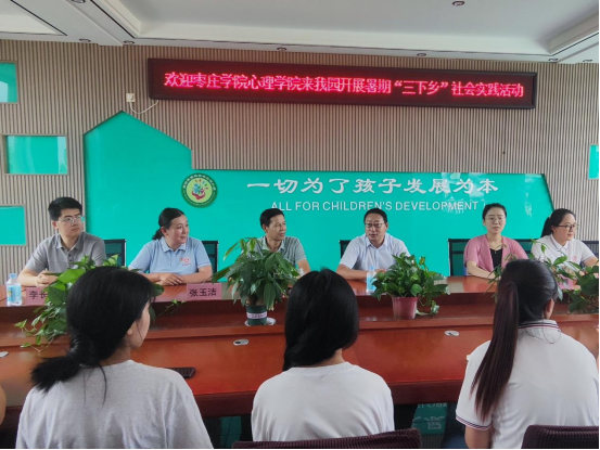 7月6日,心理与教育科学学院暑期“三下乡”社会实践团赴枣庄市薛城区邹坞镇中心幼儿园开展社会实践活动。枣庄市薛城区邹坞镇学区办主任张家林、邹坞镇中心幼儿园园长周广辉、学院党总支书记宋明峰以及学院团总支书记、辅导员和学生实践团成员共同参加活动。