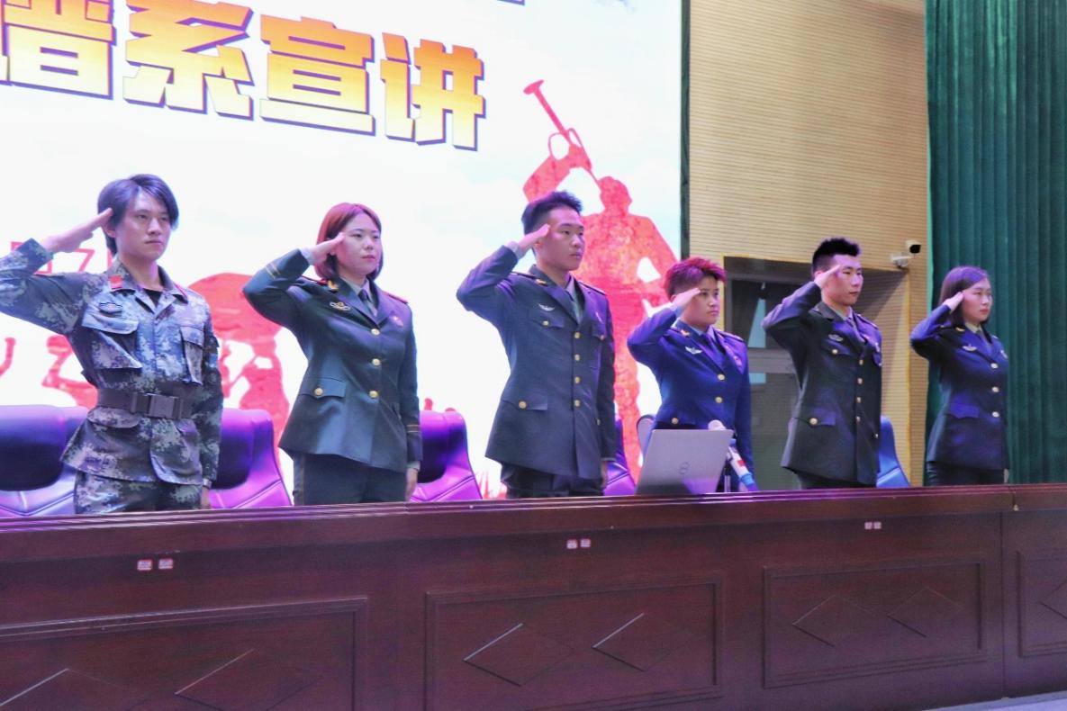 老兵宣讲团成员卢萍、赵阳、卢毅、袁慧、李学波、刘天泷六位退伍士兵分别就“铁道游击队精神”“沂蒙精神”“红船精神”“红岩精神”“抗战精神”和“兵团精神”进行宣讲。他们通过丰富的历史资料、鲜为人知的红色故事、独特新颖的解读视角,全面、系统、深刻地阐释了中国共产党人精神谱系的形成背景、科学内涵及时代价值。他们用饱满的热情、生动的语言让红色精神直击同学们的心灵,表达了弘扬中国精神的决心和担当时代使命的锐意,慷慨激昂的宣讲赢得台下师生们的阵阵掌声。