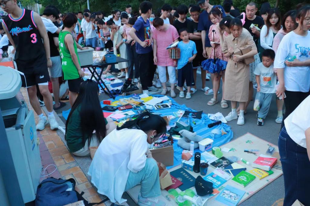 活动以二手物品交易为主,毕业生们将一件件带有成长痕迹的物品展出售卖。摊位上,考研考公的旧书籍,笔记本、耳机等学习用品,置物架、床上桌等生活用品,各种商品应有尽有、价格低廉,摊位摆满了整个街道,吸引了大量同学的前来“淘宝”,“顾客们”讨价还价,最后都满载而归,活动现场氛围活跃。即将毕业的师哥师姐们将闲置的物品拿到跳蚤市场进行出售或交换,卖出的不单单是一件普通的闲置物,更是一份情怀,它们记录了自己大学生活的酸甜苦辣,也见证了他们青春的美好时光,而毕业生们的故事也将通过小小的闲置物在母校中得以延续。