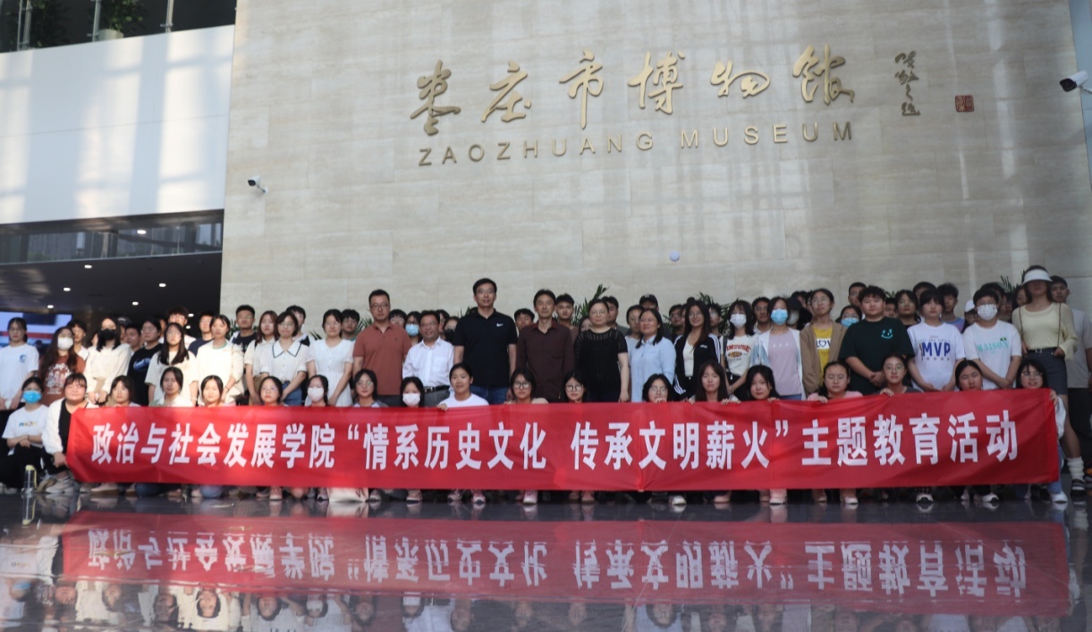为进一步推动学习贯彻习近平新时代中国特色社会主义思想主题教育高质量开展,激励师生党员不忘初心、勇毅前行,5月18日下午,政治与社会发展学院党总支组织院领导班子、师生党员、青年学生100余人前往枣庄市博物馆西馆,开展“情系历史文化 传承文明薪火”主题教育现场教学活动。