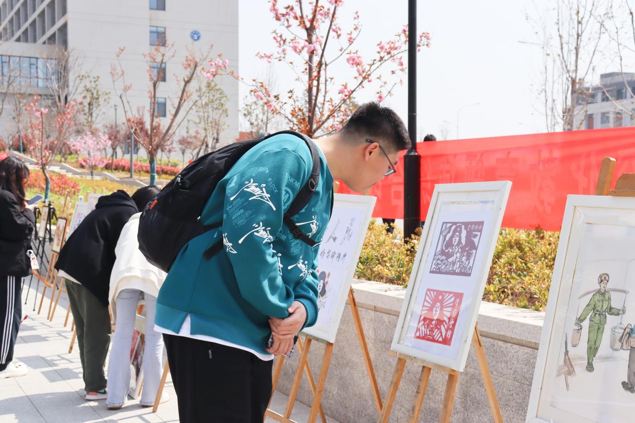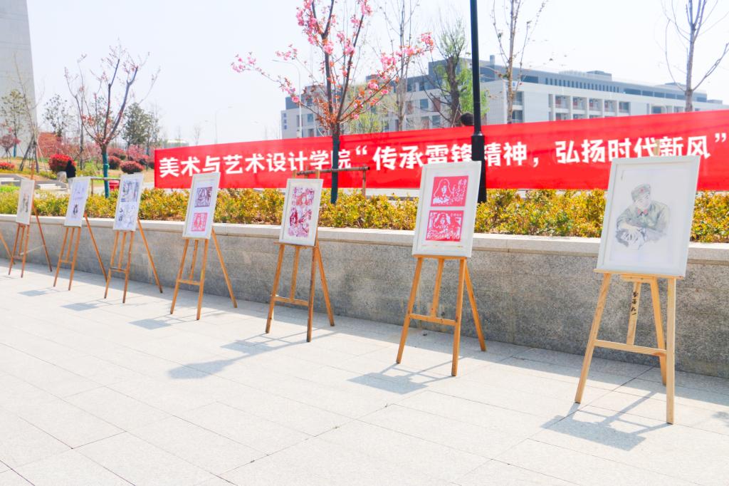 3月31日,美术与艺术设计学院在薛城校区莲花餐厅广场举办“学雷锋精神,展时代风采”主题书画展。
