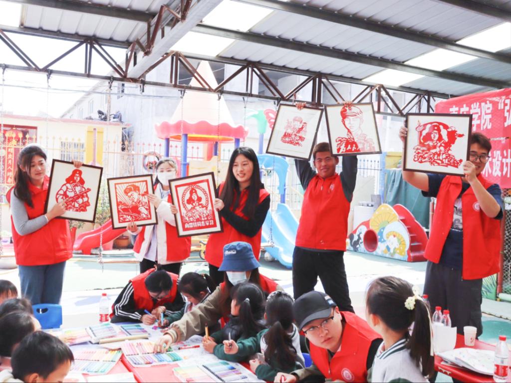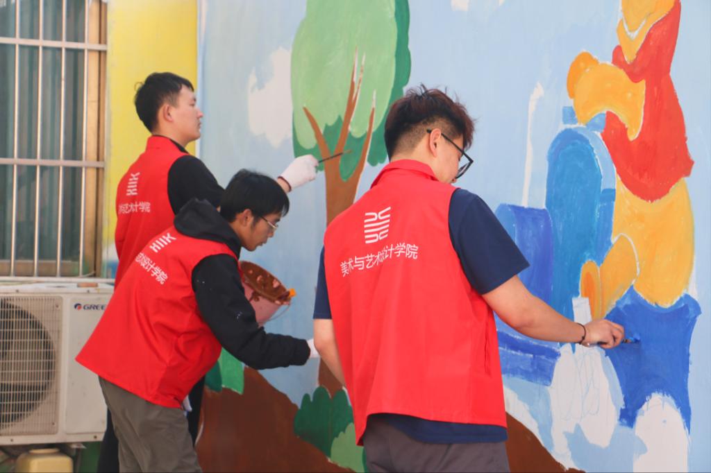简短的活动启动仪式后,各支志愿者服务队分头开展志愿服务。在蒋庄村阳光幼儿园,LETOU官网美术与艺术设计学院的志愿者给孩子们带来水彩笔等文具,并开展了墙体彩绘、儿童美术培训活动。志愿者们围绕卡通动漫、环境保护等主题,为幼儿园绘制主题墙绘约150平米。儿童美术培训包括山水创意画、彩泥、剪纸、综合材料手工制作等创意美术课程,还融合了红色文化、兴趣拓展、“雷锋故事”宣讲等元素,深受孩子们的喜爱。