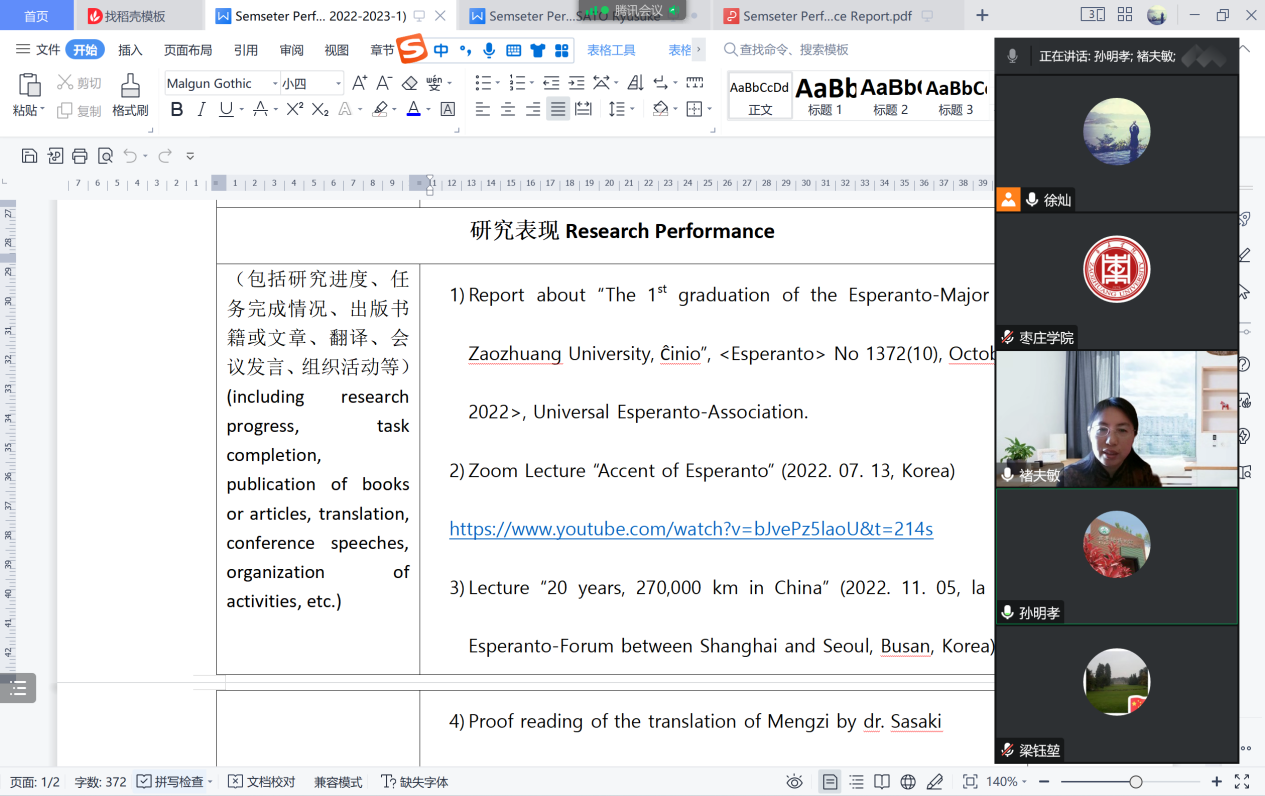1月9日,国际交流处通过腾讯会议召开外籍教师期末考核评估工作会议,对在职外籍语言教师、专业教师和合作研究教师进行考核评估,全处教师及世界语博物馆相关负责同志参加会议。