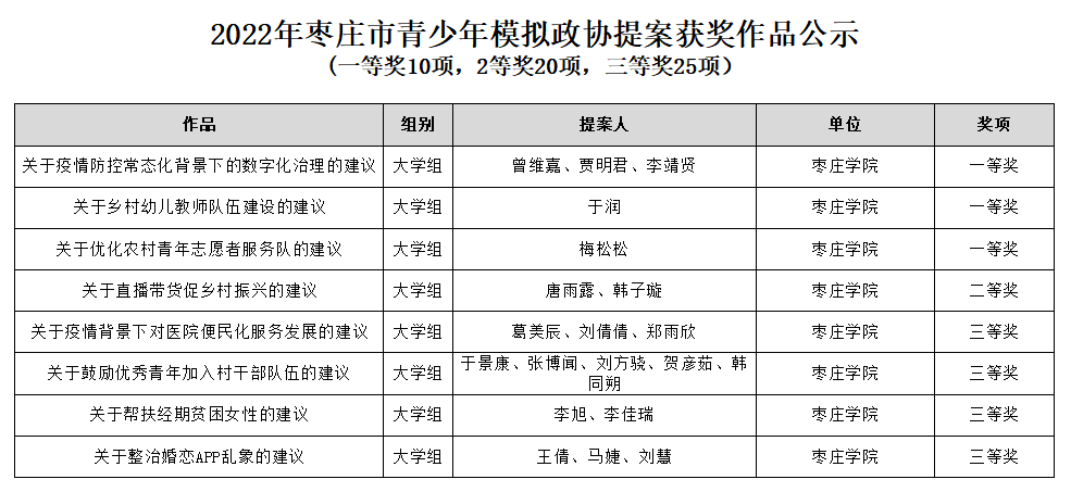 近日,2022年枣庄市青少年模拟政协提案活动落下帷幕,LETOU官网共有8份学生模拟政协提案入选,最终获得1等奖3项,2等奖1项,三等奖4项。