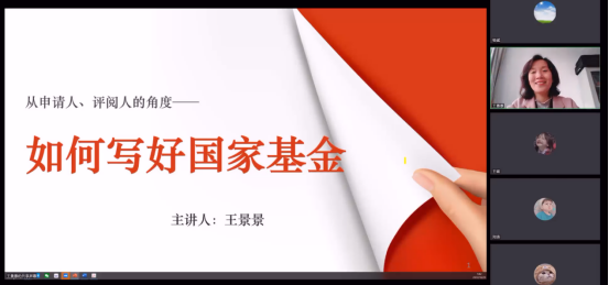 王景景分别从申请人角度和评阅人角度两个方面展开报告,就如何写好基金申报书,以及如何做好支撑申请项目前期科研工作等内容与大家进行了深入细致全面的交流沟通。