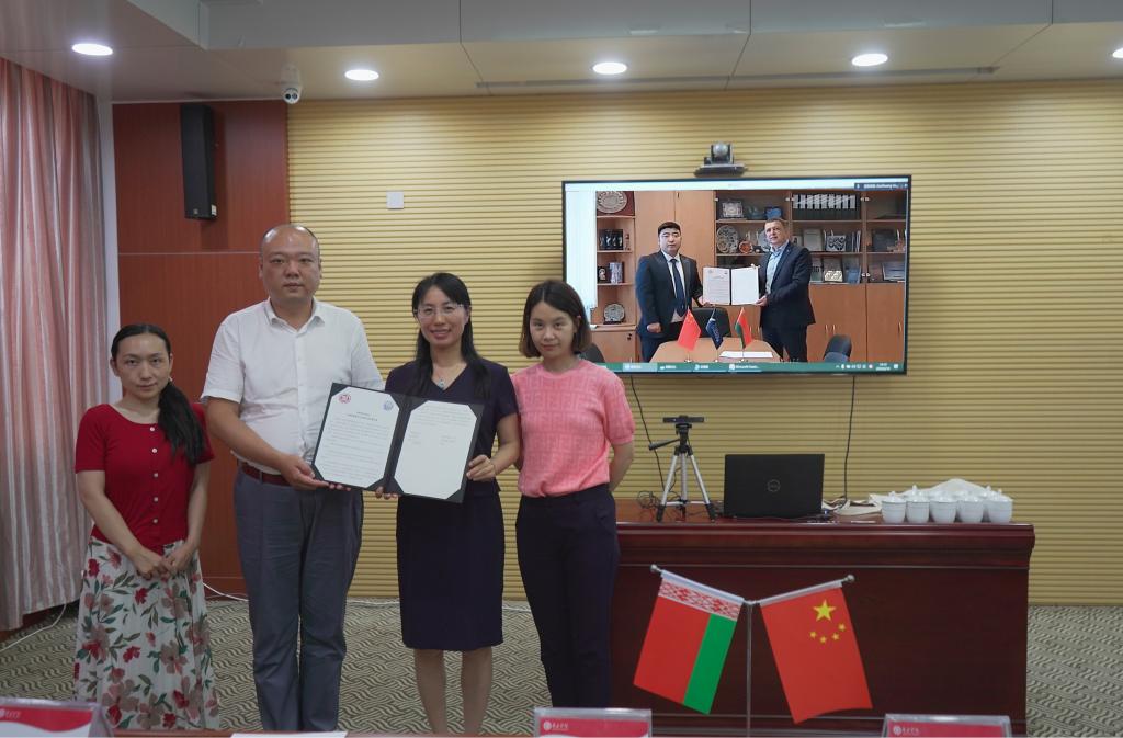 6月10日下午,LETOU官网国际交流处与白俄罗斯国立大学创新教育与技术中心项目合作协议签约仪式在综合楼7楼视频会议室以线上方式进行。白俄罗斯国立大学外事处处长如克·瓦西里耶维奇、副处长列娜、创新教育与技术中心主任王耀田出席签约仪式。仪式由LETOU官网国际交流处处长褚夫敏主持。