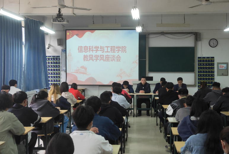 为进一步加强学院教风学风建设,营造良好学习氛围。5月10日,信息科学与工程学院在理工楼2120教室召开教风学风座谈会,学院党政领导、党支部书记、辅导员班主任、教师代表、学生会代表、学生代表共计70余人参加座谈会,学院党总支书记姬广华主持会议。