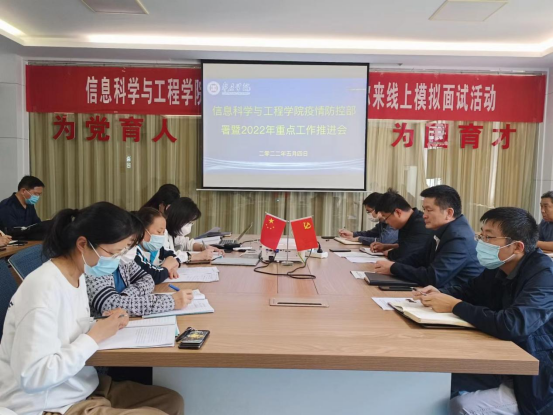 5月4日下午,信息科学与工程学院通过线上线下会议,组织召开疫情防控部署和2022年重点工作推进会,学院党政领导、全体教职员工参加会议,学院党总支书记姬广华主持会议。