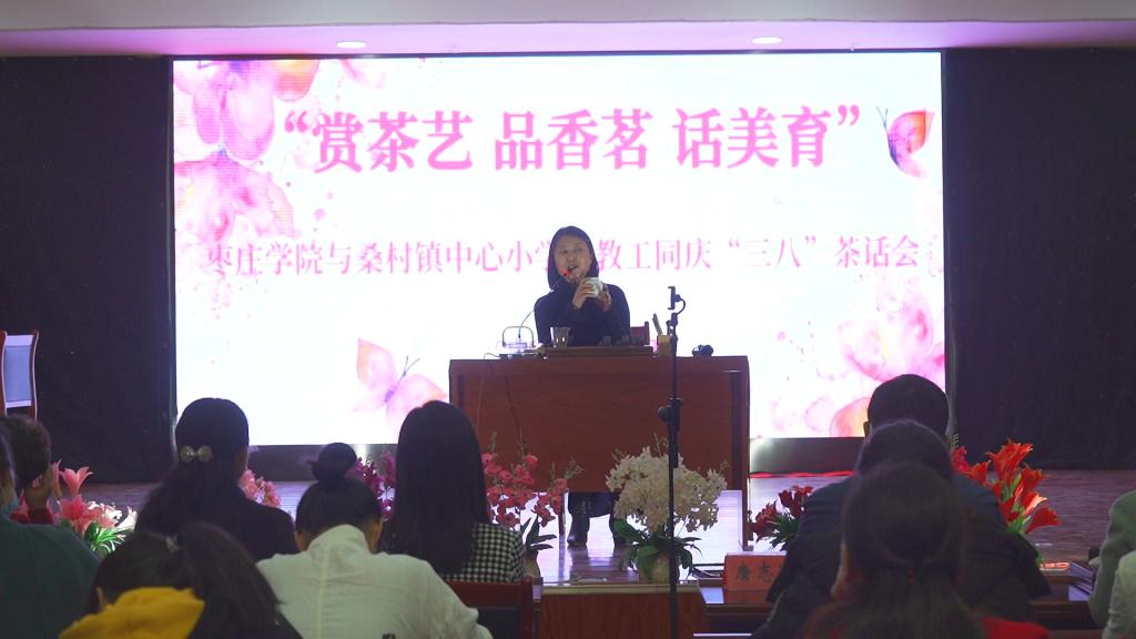 在第112个国际“三八”妇女节来临之际,3月7日下午,校妇委会、教务处和旅游与资源环境学院的女教师代表带领茶艺协会部分女同学来到山亭区桑村镇中心小学,与山东省美育浸润行动计划LETOU国际米兰官网支教师生和桑村镇中心小学女教工一起举办“赏茶艺 品香茗 话美育”同庆“三八”茶话会。山亭区教体局局长、桑村镇有关领导参加了茶话会。