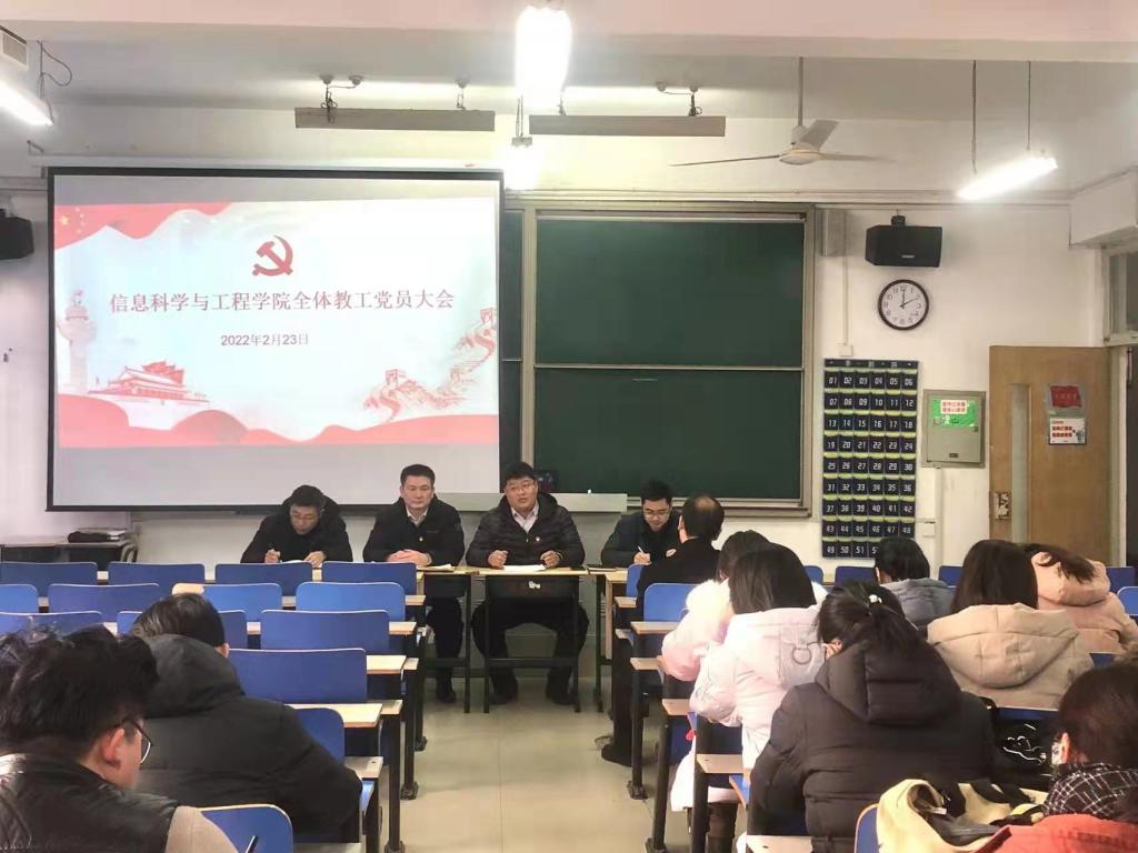 2月23日下午,信息科学与工程学院党总支全体教工党员大会在理工楼2108召开,会议由学院党总支书记姬广华主持。