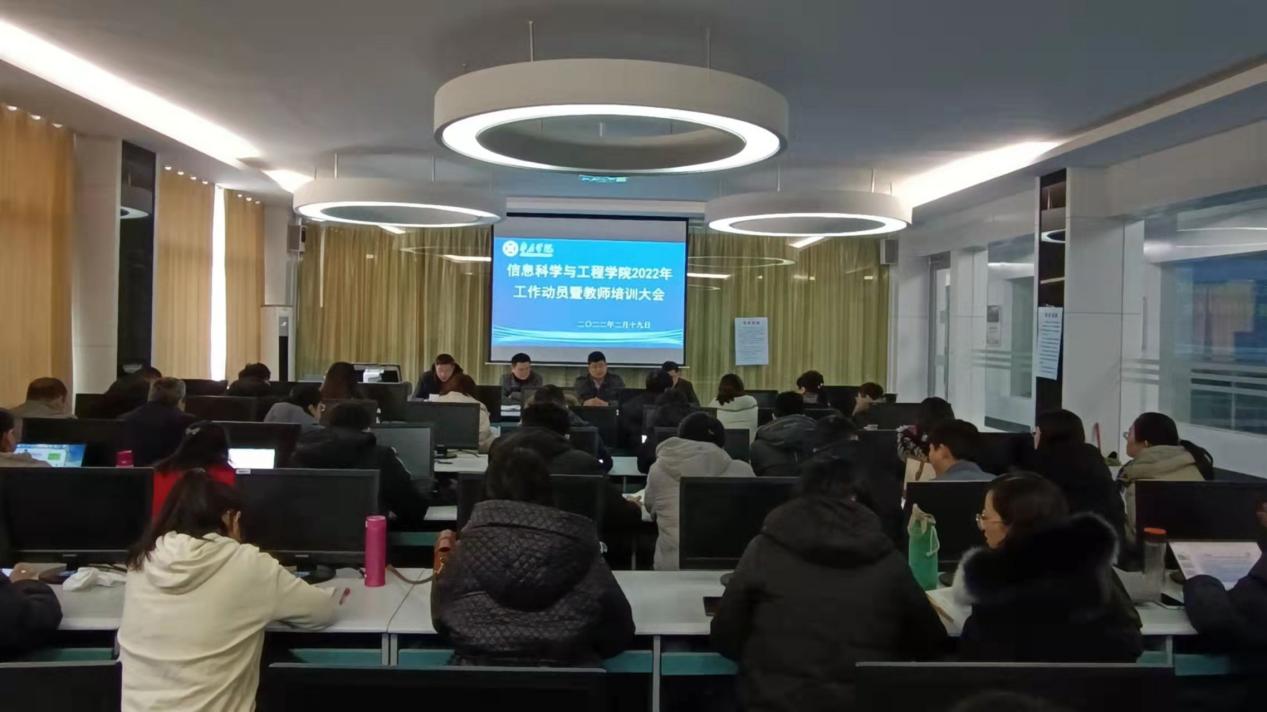 2月19日-20日,信息科学与工程学院在墨子楼召开2022年工作动员会暨教师培训大会,学院全体教职员工参加动员大会,学院党总支书记姬广华主持动员大会,专任教师参加教师培训会,院长闫昕主持培训会。