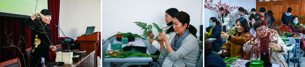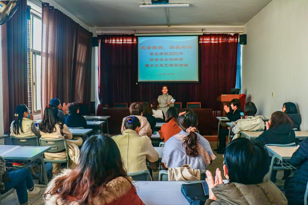 为进一步丰富女教职工的文化生活,活跃校园文化氛围,贯彻落实美育发展有关要求,12月16日下午,妇委会在图书馆会议室组织开展中国传统花艺培训暨第四次基层妇委会主任培训活动。本次活动以“花香雅韵,美美与共”为主题,活动邀请到枣庄市花艺协会会长郭海侠做主讲嘉宾。