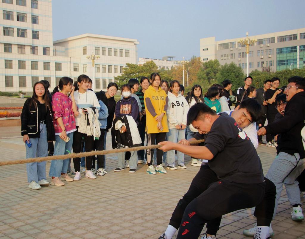 此次比赛共有三个项目,分别为拔河、1分钟集体跳绳、踢毽子。比赛采取积分制,总排名按照积分总数计算。在“踢毽子”比赛中同学们身轻如燕,沉着稳重;“集体跳绳”比赛中,8个人团结协作、配合默契、反应灵敏;“拔河”比赛中,参赛的队员们步调一致,口号响亮,紧握长绳拼命往后拉!周边的老师、同学们组成的啦啦队大声呐喊加油,将现场的活动推向高潮。