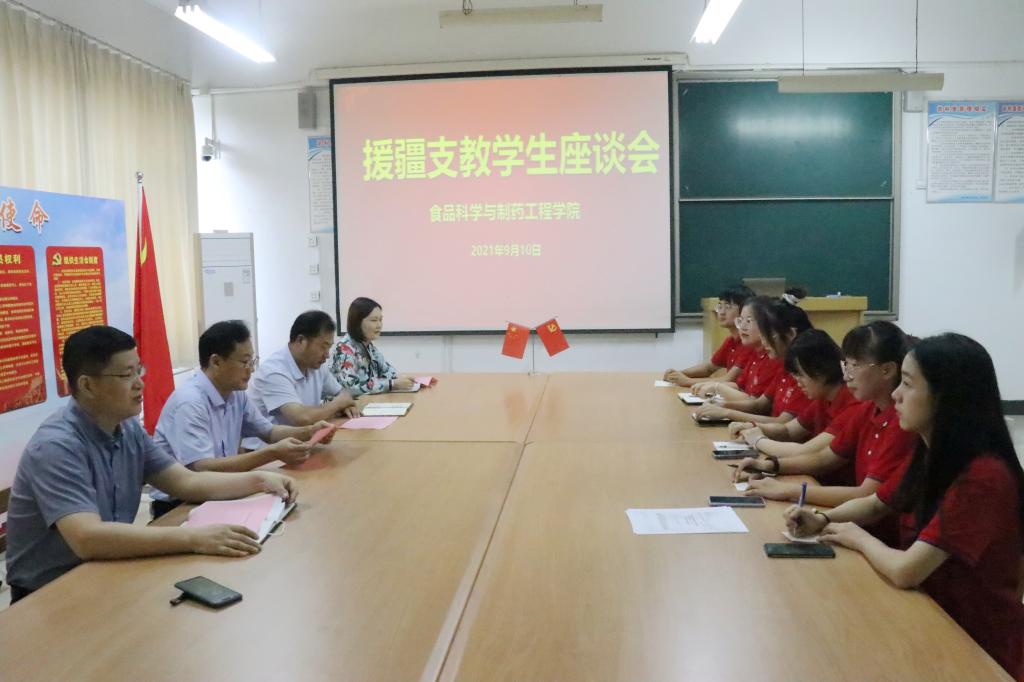 9月10日上午,食品科学与制药工程学院举办援疆支教学生座谈会,学院党政领导、即将出征的6名援疆支教学生参加座谈会。