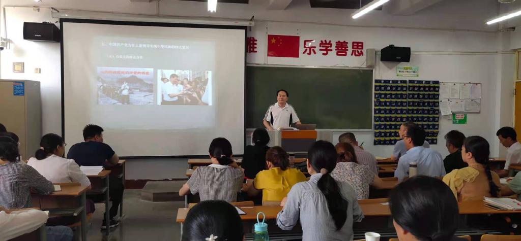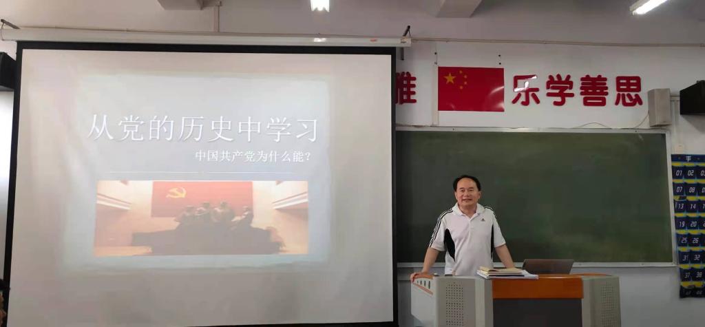 宋建修以《从党的历史中学习中国共产党为什么能》为题,从中国共产党为什么能建立新中国、中国共产党为什么能收拾好国民党留下的烂摊子、中国共产党为什么犯过严重错误还能得到群众支持、中国共产党为什么能取得改革开放巨大成就、中国共产党为什么能领导实现中华民族的伟大复兴五个方面带领大家分析中国共产党为什么“能”。宋建修指出,理论和实践都证明,中国共产党能领导中国人民走出了一条从站起来、富起来到强起来的中国道路,这与中国共产党的诸多优秀特质息息相关。中国共产党有远大的理想追求,有清醒的政治领导,有科学的理论指导,有坚强的政治保证,有强大的群众力量,有严明纪律规矩等优秀特质。我们要始终坚持中国共产党的领导,为实现中华民族伟大复兴拼搏向上、砥砺前行。
