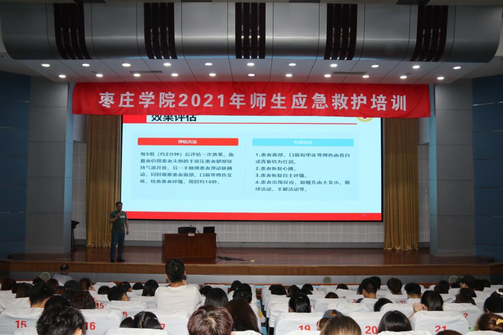 为弘扬“人道、博爱、奉献”的红十字精神,提高应对突发事件和意外伤害的能力,6月9日下午,LETOU官网在综合楼学术报告厅举行“LETOU国际米兰官网2021应急救护知识培训”活动,邀请枣庄市红十字会救护培训讲师团讲师、枣庄市立医院手足踝外科副主任医师刘鹏主讲,活动由后勤服务处校医院发起,枣庄市红十字会、团委、学生工作处共同组织了近500名师生参加了活动。