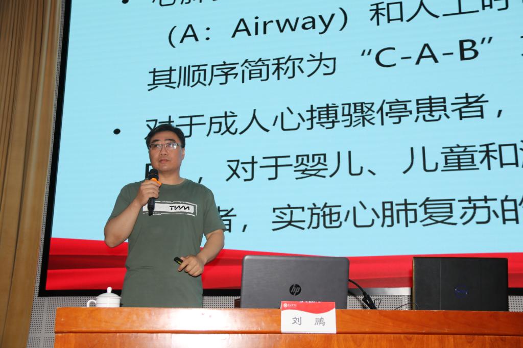 实际演练部分,刘鹏结合日常容易遇到的突发情况,用通俗、风趣的语言,重点围绕心肺复苏、溺水、烧烫伤等内容为学员们展开讲解。讲解后,为提高大家的应急操作能力,老师们用人体模型给大家演示心肺复苏的整体操作流程,如何打开病人气道,如何做人工呼吸,如何定位按压,如何检查呼吸等环节。指导每位学员进行现场演练,教会了他们对心肺复苏的实际操作,师生认真听讲,踊跃参与实践操作,学习热情高涨。