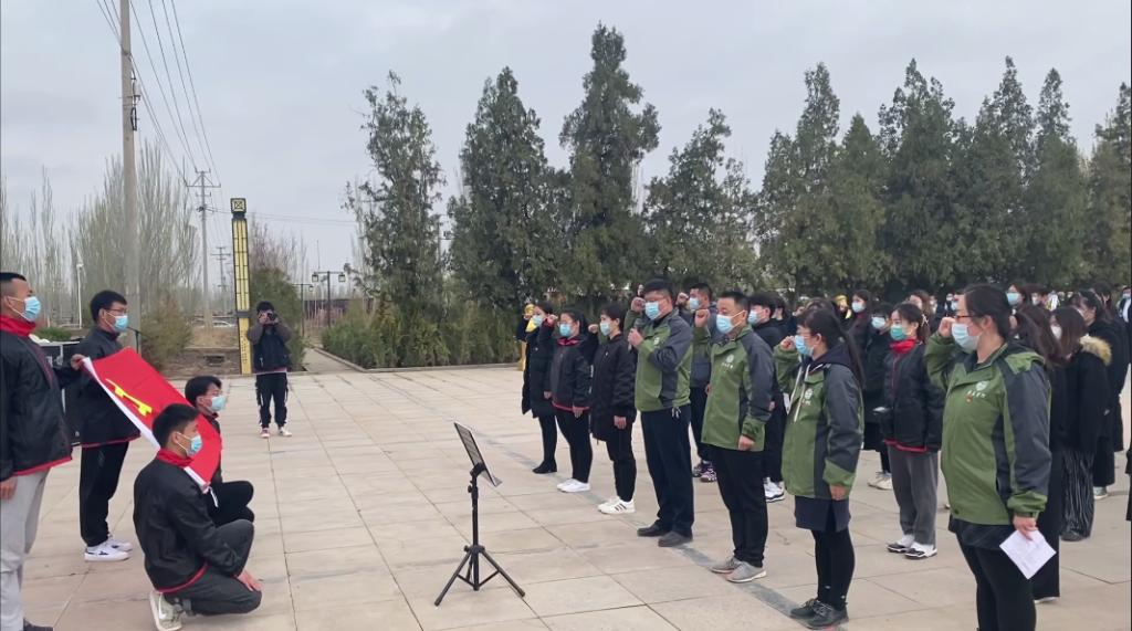 最后,全体党员在革命烈士纪念碑前郑重举起右拳重温入党誓词,做出了庄严承诺。