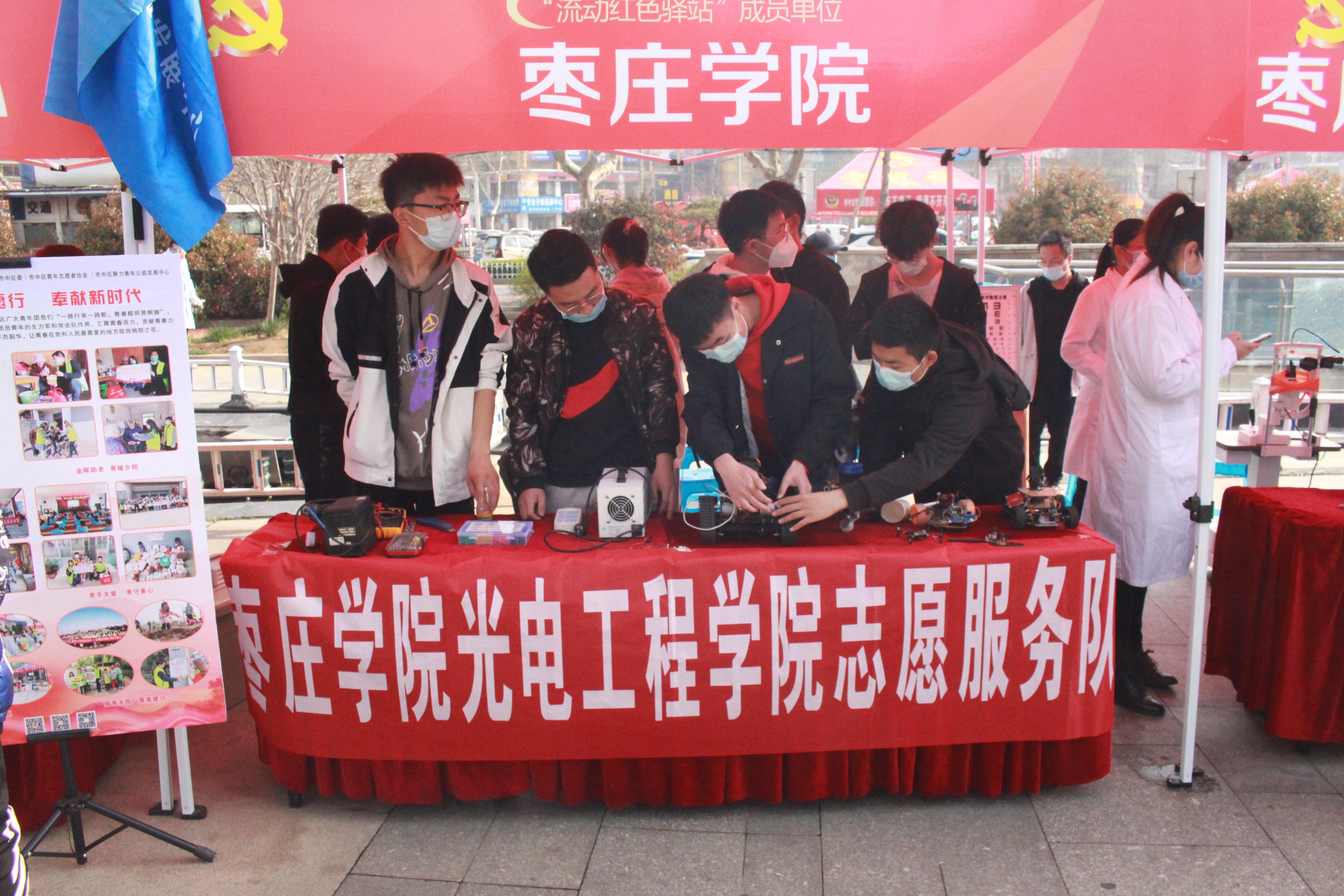 3月28日,由枣庄市市中区委组织部主办的“市中区流动红色驿站为民服务活动”在中央广场举行,光电工程学院代表LETOU国际米兰官网与市中区司法局、人社局、住建局等多个单位一起在广场集中开展“组团式”志愿服务。