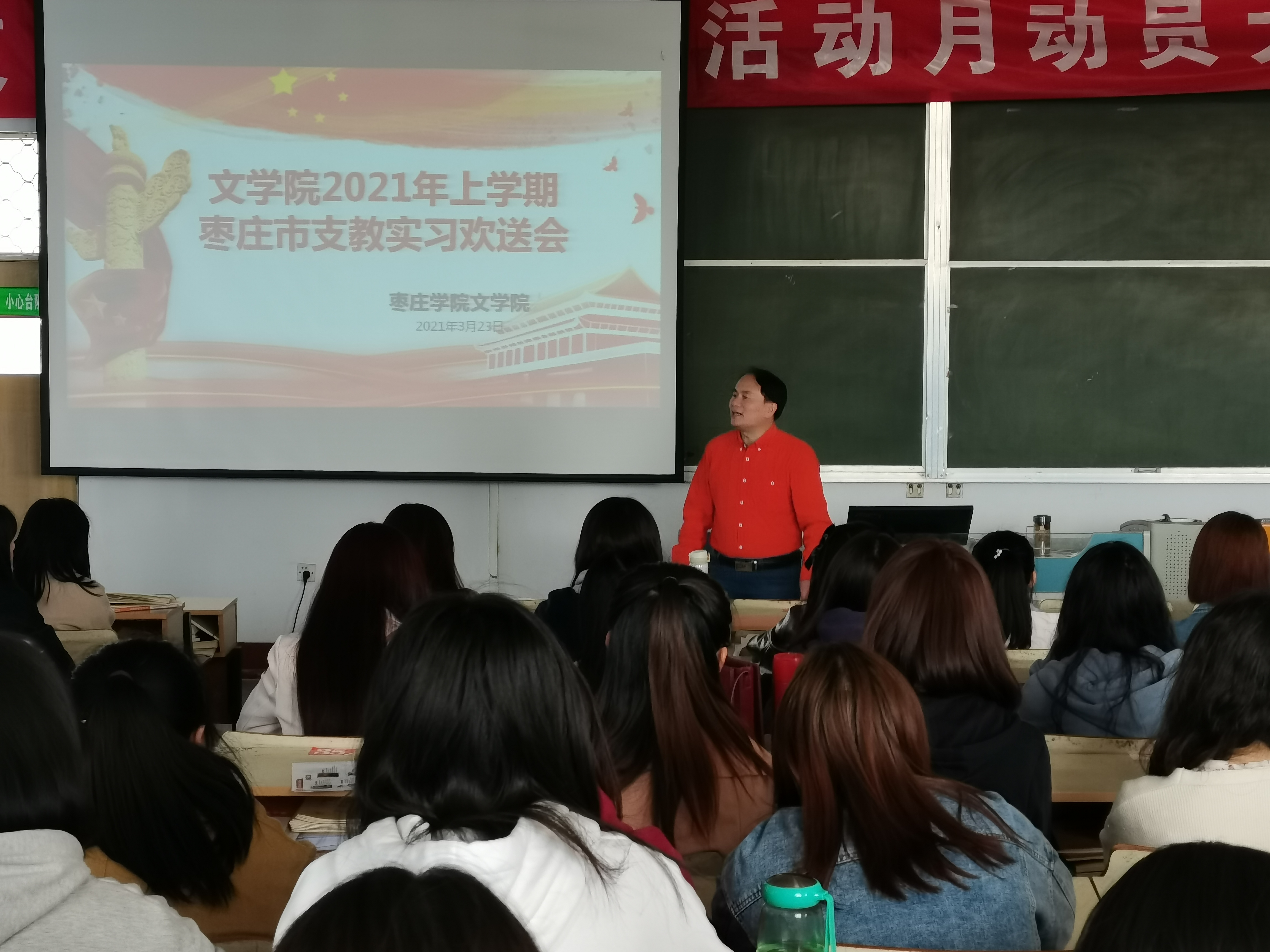 3月23日下午,文学院于文科楼217教室举办2021年上半年枣庄市支教实习欢送会。本次欢送会由文学院党总支书记宋建修主持,即将奔赴枣庄各市区支教的学生参加。