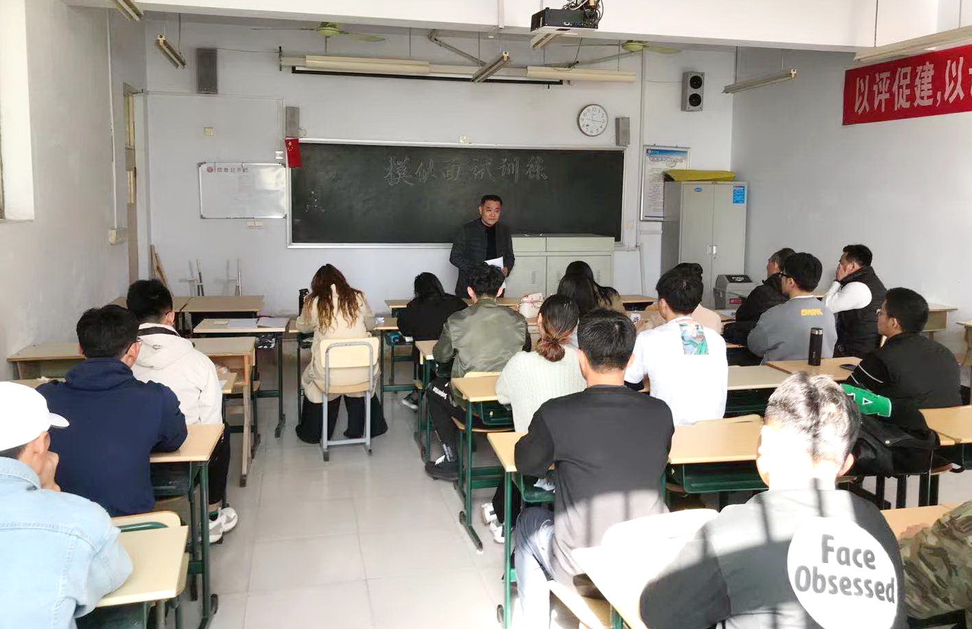 本次模拟面试由学院7位教师担任主考官,就学生的语言表达、逻辑思维、创新能力、应变及专业知识进行强化和指导,针对面试中的出现的问题进行点评,为学生提出指导性建议。