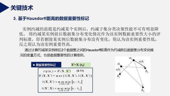 耿聪表示,借鉴粒计算在特征选择领域的研究成果,提出一种基于粒化数据重要性标记的快速实例约减算法。基于粒化数据重要性标记的快速实例约减算法,通过采用“分而治之”的策略,在保持数据集分类精度的前提下,实现数据集的快速约减。提出的数据粒化处理大大降低了后续数据重要性计算成本;基于Hausdorff距离数据重要性标记的实例约减策略,约减子集较好地保留了原始数据集的轮廓特征。
