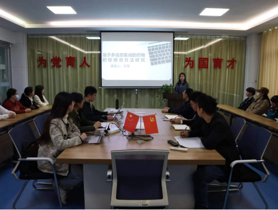 计算生物学科创新团队的王莹老师作了题为《基于多信息集成的药物靶标预测方法研究》的学术报告。报告对基于机器学习的药物靶标预测方法DTI研究的背景和意义及各种预测方法的优缺点做了基本介绍,提出了一种通过结合蛋白质序列和药物分子结构来预测RoFDT的可靠DTI预测方法,为预测DTI提供了有效方法,可以为潜在的药物发现提供新的见解。