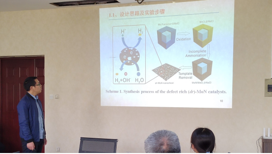 电催化类新能源材料创新团队负责人熊洁博士做了题为《“氢”“钼”而来-钼基低维电化学析氢催化剂设计三部曲》的学术报告。报告介绍了通过界面工程,在结构、形貌、相态和组成调控方面开发新型钼基低维电化学析氢催化剂,包括构筑缺陷结构、构建异质结、原位相变、设计多层次结构和掺杂异质原子。报告旨在通过一系列精心设计,提高活性位点密度,改善导电性能和/或调节催化剂的电子结构,以获得具有较低过电位,高催化活性和优异稳定性的析氢电催化剂,从而使过渡金属化合物在成本和性能方面尽可能满足电催化水分解技术的商业化要求。