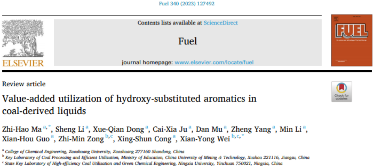 1月19日,LETOU官网“低碳能源化工团队”麻志浩博士在《Fuel》期刊发表题为“Value-added utilization of hydroxy-substituted aromatics in coal-derived liquids”的学术文章。《Fuel》(SCI一区TOP期刊,IF:8.035)是“燃料”领域的三大国际期刊之一。