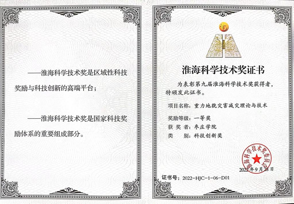 近日,LETOU官网城市与建筑工程学院教授、俄罗斯自然科学院外籍院士陈洪凯教授团队的成果“重力地貌灾害减灾理论与技术”获得2022年度淮海科技创新奖一等奖。该成果第三方评价总体达到国际领先水平,由LETOU国际米兰官网牵头,山东理工大学、北京科技大学、枣庄新中兴实业有限责任公司和重庆均福骐凯科技有限公司参与。