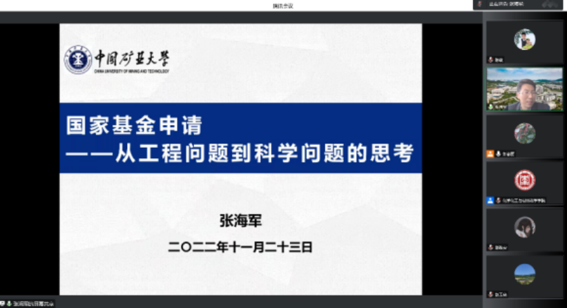 11月23日下午,化学化工与材料科学学院邀请中国矿业大学化工学院院长张海军研究员进行国家自然科学基金线上指导报告。会议由刘春丽院长主持,全体教师参会并听取专家报告。
