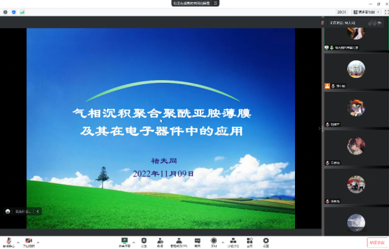 褚夫同博士作了题为《气相沉积聚合聚酰亚胺薄膜及其在电子器件中的应用》的学术报告。报告主要介绍了气相沉积聚合PI薄膜的制备及微电子器件的制作过程,并探索了PI作为器件核心部分在薄膜体声波谐振器、压电微机械超声换能器及氮化镓高电子迁移率场效应晶体管中的应用。