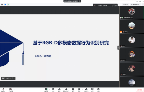 徐伟尧博士作了题为《基于RGB-D多模态数据行为识别研究》的学术报告,对多模态人体行为识别的研究主要从三个方面展开:单模态特征提取、多模态特征融合和跨模态特征对齐。与传统的基于单一模态数据的人体行为识别不同,多模态数据人体行为识别能够有效利用不同模态数据的特点,充分利用不同模态数据的互补信息,具有更强的泛化性能。