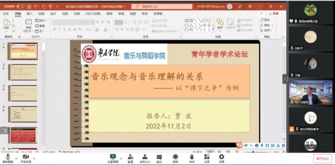 11月2日下午,音乐与舞蹈学院青年学者学术论坛《音乐观念与音乐理解的关系——以“谭卞之争”为例》通过线上腾讯会议展开。