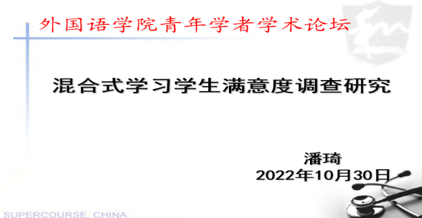 近日,外国语学院举办第三期“青年学者学术论坛”。此次论坛采取线上方式进行。我院青年教师、目前在马来西亚理工大学攻读博士学位的潘琦老师作了题为“混合式学习学生满意度调查研究”的学术报告。外国语学院全体专任教师和部分学生参加本次学术论坛。