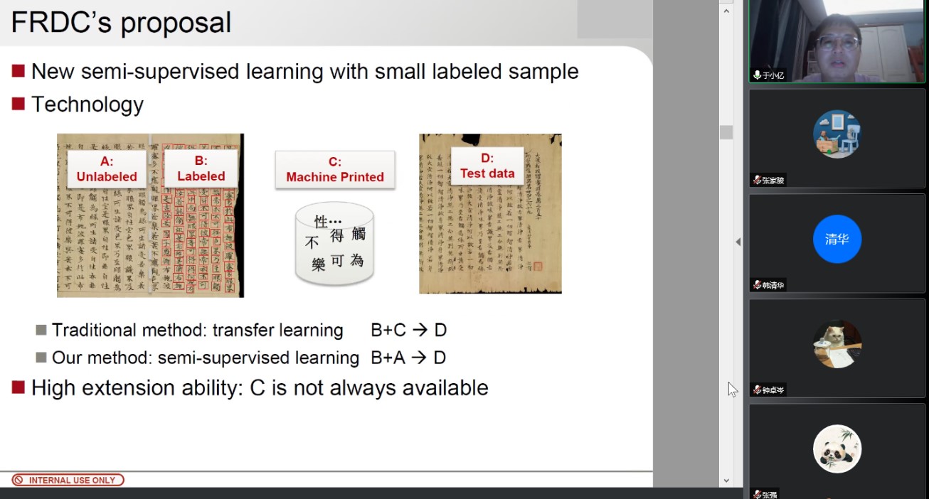 报告中,于教授结合自身研究经历,通过大量案例,深入浅出地介绍了深度学习技术的相关应用。于教授分享了他在扫描文档的CopyMark/Watermark去除技术,基于深度学习的自动方向判别和面向古籍数字化的图像拼接技术以及手写汉字识别等相关原理技术的开发与应用方面的心得体会。于教授介绍了掌纹识别、声纹识别等多模态融合身份验证研究的最新进展,结合自身在研课题——基于生成对抗网络的COMET实验束流模拟充采样方法研究——还对深度学习在高能物理研究中的应用做出展望。