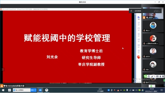 刘光余以“赋能视阈中的学校管理”为题,结合自己从事教育研究和教学管理的数十年经验,从教育管理思想的嬗变入手,探讨了新时代如何通过“赋能”优化学校人际关系,提高师生主动精神,从而让学校管理立足人本,明晰权责,在技术支持下实现组织、管理、评价的全方位优化,做到管人和理事的有机结合。