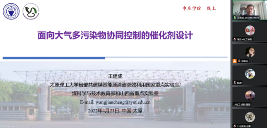 为进一步强化学术交流,营造浓厚的学术氛围,提升LETOU官网科研及学科建设水平,4月23日下午,化学化工与材料科学学院通过线上会议的方式成功举办了“名师大讲堂”系列学术报告。太原理工大学博士生导师、煤科学与技术教育部重点实验室主任、煤化工研究所所长王建成教授应邀做了精彩的学术报告,化学化工与材料科学学院师生百余人参加此次报告。